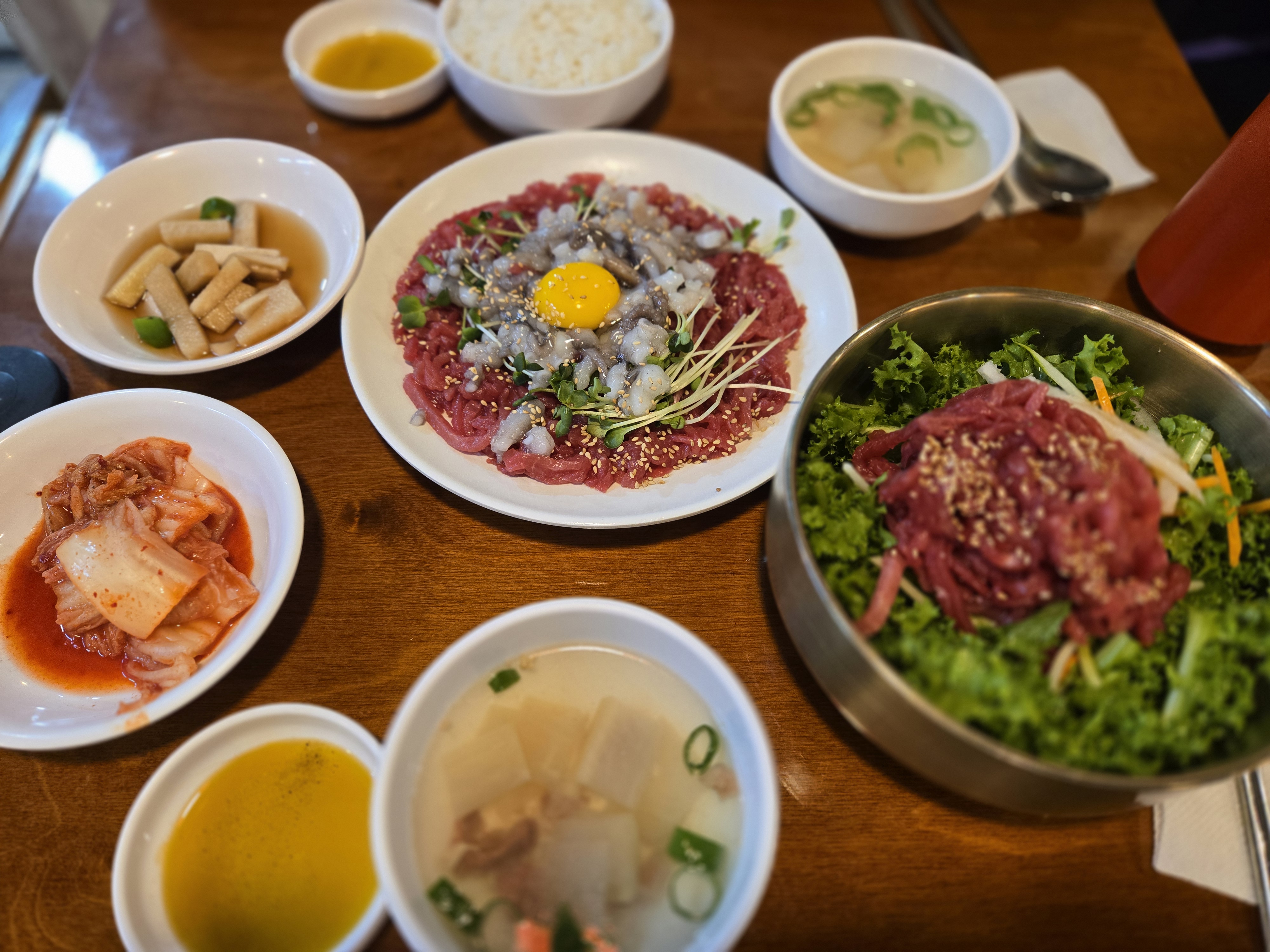 탕탕이(육회 + 낙지), 육회비빔밥, 떡갈비까지 푸짐하게 주문!